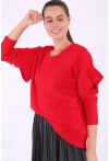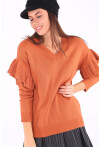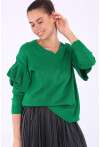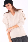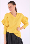 15627 V Yaka Kolları Fırfırlı Triko Kazak