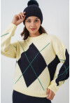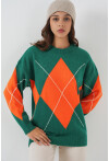 Ürün Içerigi %80 Akrilik %20 Polyester Ürün özellikleri Desenli Oversize Triko Kazak Model Bilgiler Bedeni : 38 Ürün Boyu: 63 cm Kol Boyu:46 cm Manken Ölçüsü : Boy:176 Gögüs:90 Bel:63 Basen:94
