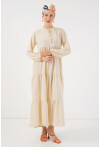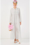 Ürün İçeriği %95 Polyester %5 Likra Ürün özellikleri: Yaka Bağcıklı Elbise Model Bilgileri Bedeni : 38 Ürün Boyu: 136 cm Manken Ölçüsü : Boy:176 Göğüs:90 Bel:63 Basen:94