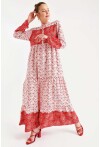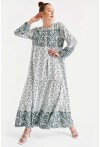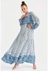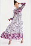1943 Çiçek Desen Etek Ucu Valanlı Elbise