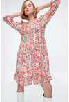 V yaka Elbise, Volanlı Elbise, Kolu Lastikli Elbise, Düğmeli Elbise