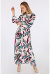 Ürün Içerigi % 100 Viskoz Ürün özellikleri: Kol Büzgülü Elbise, Boydan Düğmeli Kuşaklı Elbise Model Bilgileri Bedeni : 38 Ürün Boyu: 136 cm Kol Boyu: 61 cm Manken Ölçüsü : Boy:176 Gögüs:90 Bel:63 Basen:94 Genel Yikama ve Kullanma Talimatlari • El isi ve boncuklu ürünler hassas programda tersten yikanmalidir • Baskili ürünler zamanla dökülebilir • Yikamada ürünü bozmamak için 30 C'yi asmayiniz • Ürünü yikarken yikama talimatina uygun olarak yikayiniz • Renkli ürünlerde uygun deterjan kullaniniz • Denim olan ürünler ve koyu renkli ürünler açik renkli diger ürünler ile yikanirken boyayabilir. Birlikte yikamayiniz • Giysileri kuruturken direkt günes isigina maruz birakmayiniz