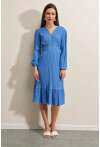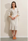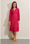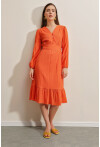 Volanlı Dokuma Desenli Elbise