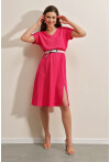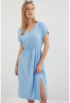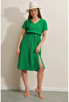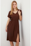 2378 V Yaka Yırtmaçlı Örme Elbise
