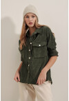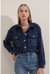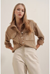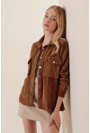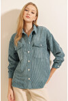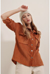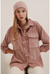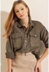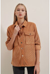 Çizgili Kadife Gömlek, Cepli Dügmeli Gömlek