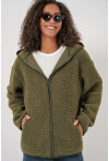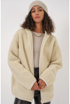 Kadın Kapüşonlu Oversize Pelus Ceket