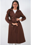 Product Details: 100% Polyester Product Features Double-Breasted Trench Coat, Belted Seasonal Trench Coat Model Information Size: 38 Length: 109 cm Sleeve Length: 58 cm There is a 2 cm difference between sizes. Model Measurements: Height: 176 cm, Bust: 90 cm, Waist: 63 cm, Hips: 94 cm General Washing and Care Instructions: Wash delicate and beaded items inside out on a gentle cycle. Printed designs may fade over time. Do not exceed 30°C during washing to avoid damaging the product. Follow the washing instructions specific to the garment. Use appropriate detergent for colored items. Denim and dark-colored items may bleed onto lighter-colored garments. Wash them separately. Avoid drying garments in direct sunlight.