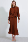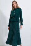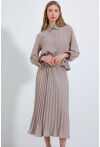 Ürün Içerigi % 95 Polyester % 5 Likra Ürün özellikleri Model Bilgileri Bedeni : 38 Üst Ürün Boyu: 56 cm Üst Ürün Kol Boyu: 56 cm Alt Ürün Boyu: 93 cm Manken Ölçüsü : Boy:176 Gögüs:90 Bel:63 Basen:94 Genel Yikama ve Kullanma Talimatlari • El isi ve boncuklu ürünler hassas programda tersten yikanmalidir • Baskili ürünler zamanla dökülebilir • Yikamada ürünü bozmamak için 30 C'yi asmayiniz • Ürünü yikarken yikama talimatina uygun olarak yikayiniz • Renkli ürünlerde uygun deterjan kullaniniz • Denim olan ürünler ve koyu renkli ürünler açik renkli diger ürünler ile yikanirken boyayabilir. Birlikte yikamayiniz • Giysileri kuruturken direkt günes isigina maruz birakmayiniz