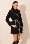 Kadın Kuşaklı Oversize Kaşe Kaban 9157