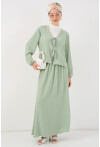 Ürün Içerigi %95 Polyester %5 Elastan Ürün özellikleri: Kadin Ayrobin Kimono Etek İkili Takım Model Bilgileri Bedeni : 38 Üst Ürün Boyu:55cm Kol Boyu:61cm Alt Ürün Boyu:92cm Manken Ölçüsü : Boy:176 Gögüs:90 Bel:63 Basen:94 Genel Yikama ve Kullanma Talimatlari • El isi ve boncuklu ürünler hassas programda tersten yikanmalidir • Baskili ürünler zamanla dökülebilir • Yikamada ürünü bozmamak için 30 C'yi asmayiniz • Ürünü yikarken yikama talimatina uygun olarak yikayiniz • Renkli ürünlerde uygun deterjan kullaniniz • Denim olan ürünler ve koyu renkli ürünler açik renkli diger ürünler ile yikanirken boyayabilir. Birlikte yikamayiniz • Giysileri kuruturken direkt günes isigina maruz birakmayiniz