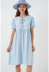 Ürün Içerigi % 100 Viskon Ürün özellikleri: Kadın Bağcıklı Midi Elbise Model Bilgileri Bedeni : 38 Ürün Boyu:98cm Kol Boyu:27cm ÜRÜNÜMÜZ ASTARSIZDIR. Manken Ölçüsü : Boy:176 Gögüs:90 Bel:63 Basen:94 Genel Yikama ve Kullanma Talimatlari Yikamada ürünü bozmamak için 30 C'yi asmayiniz Ürünü yikarken yikama talimatina uygun olarak yikayiniz Renkli ürünlerde uygun deterjan kullaniniz