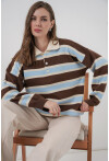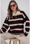 Kadın Çizgili Polo Yaka Triko Kazak 15952