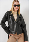 Kadin Kısa Suni Deri Ceket 1058