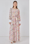 Ürün Içerigi %84 Viskon %16 Naylon Ürün özellikleri: Kadın Kuşaklı Uzun Elbise Model Bilgileri Bedeni : 38 Ürün Boyu: 138cm Kol Boyu:61cm Manken Ölçüsü : Boy:176 Gögüs:90 Bel:63 Basen:94