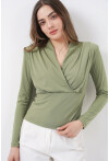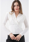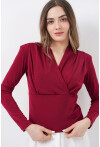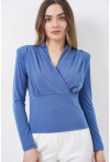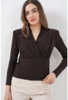 Kadin Omuz Vatkalı Kruvaze Yaka Bluz 942