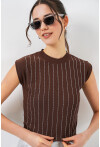 Kadın Sıfır Kol Taşlı Bluz