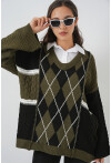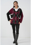 Kadın V Yaka Baklava Desen Örme Triko Kazak