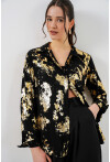 Ürün Içerigi % 100 Polyester Ürün özellikleri Model Bilgileri Bedeni : 38 Ürün Boyu: 73 cm Kol Boyu: 53 cm Manken Ölçüsü : Boy:176 Gögüs:90 Bel:63 Basen:94 Genel Yikama ve Kullanma Talimatlari • El isi ve boncuklu ürünler hassas programda tersten yikanmalidir • Baskili ürünler zamanla dökülebilir • Yikamada ürünü bozmamak için 30 C'yi asmayiniz • Ürünü yikarken yikama talimatina uygun olarak yikayiniz • Renkli ürünlerde uygun deterjan kullaniniz • Denim olan ürünler ve koyu renkli ürünler açik renkli diger ürünler ile yikanirken boyayabilir. Birlikte yikamayiniz • Giysileri kuruturken direkt günes isigina maruz birakmayiniz
