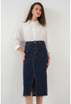 Kadın Yırtmaçlı Midi Kot Etek 8038
