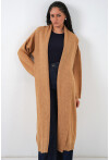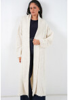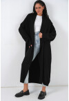 Kadın Yün Dokulu Katlama Yaka Uzun Triko Hırka